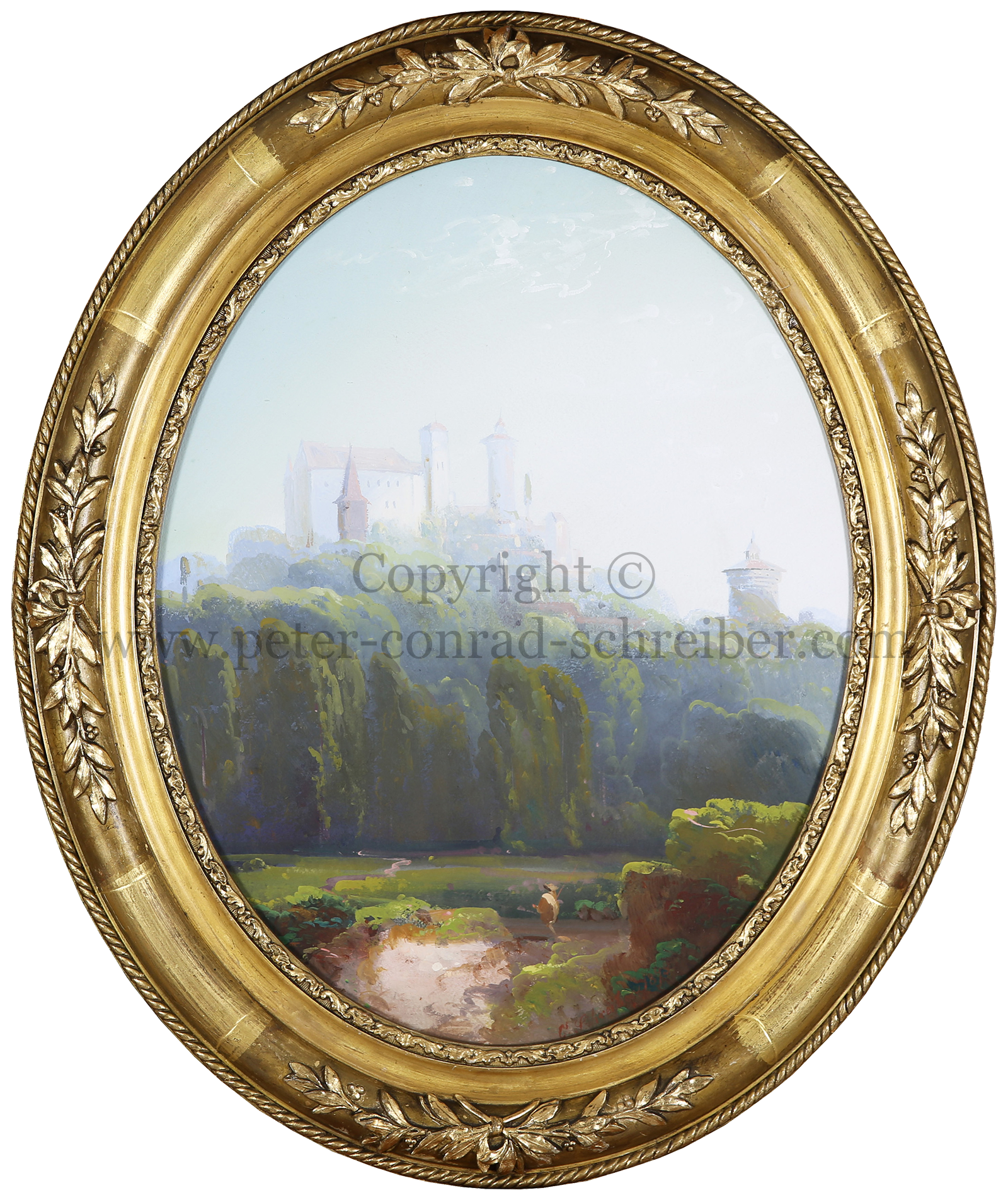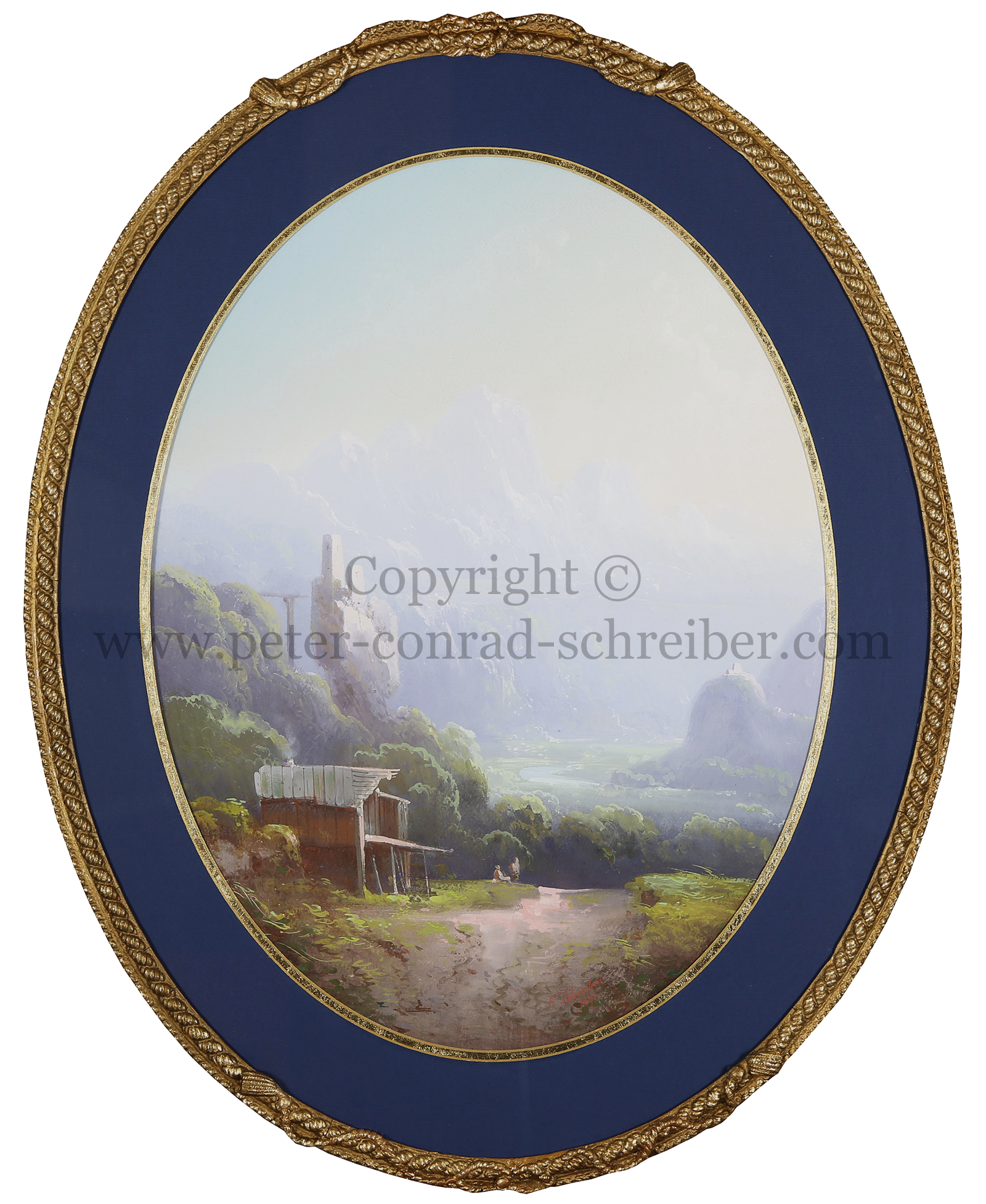 Gouache auf Papier, original blattvergoldeter Rahmen aus der Zeit