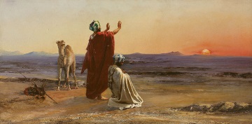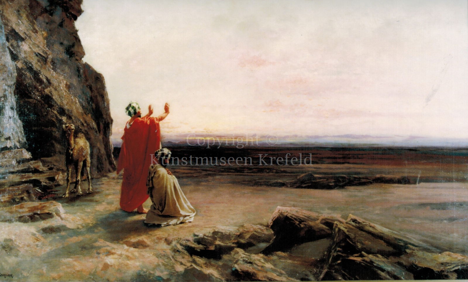 [27] „Morgengebet in der Wüste“ (Biaskra/Algerien) wird dieses Ölbild auf Leinwand genannt. Es unterscheidet sich im Stil, Motiv und in der Signatur (P. Schreiber statt C. Schreiber) von allen anderen Bildern, die wir von Schreiber kennen. Es befindet sich bereits seit um 1900 in der Sammlung der Kunstmuseen Krefeld befand. Es gibt keine weiteren Angaben zur Provenienz, und zur Person des Malers, die weiterhelfen könnten. Der Kunsthandel schreibt es Peter Conrad Schreiber zu. Hieran gibt es Zweifel. Bildnachweis: Sammlung Kunstmuseen Krefeld. Inventarnummer: GV 1965/514.