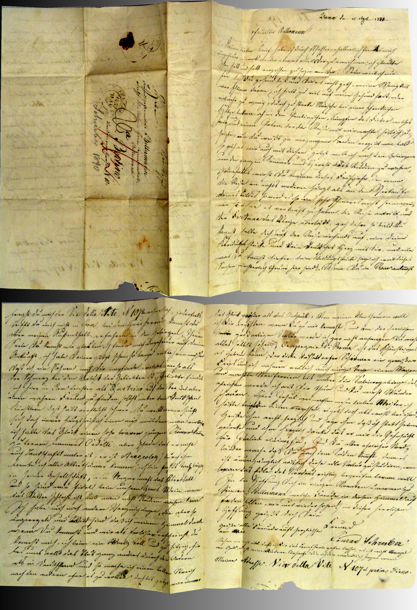 Italien war damals aus vielen, auch aus politischen Gründen das sprichwörtliche Land der Sehnsucht, wo man freier als zu Hause atmen konnte. Eine politische Motivation stand bei Schreiber, wenn überhaupt, aber sicher nicht im Vordergrund. Das ergibt sich schon aus der die Heimat mitumfassenden, geradezu überschwänglichen und völlig unpolitischen Grundstimmung des o.g. Briefs von 1840 (Abb. B2) an Bellermann. Schreiber fordert nämlich den Freund auf: „mache, daß du nach dem Süden kommst, denn es ist unumgänglich nöthig diese edle Natur [Anm.: Italiens] zu studieren, wenn man das Edle des Nordens richtig begreifen lernen will.“