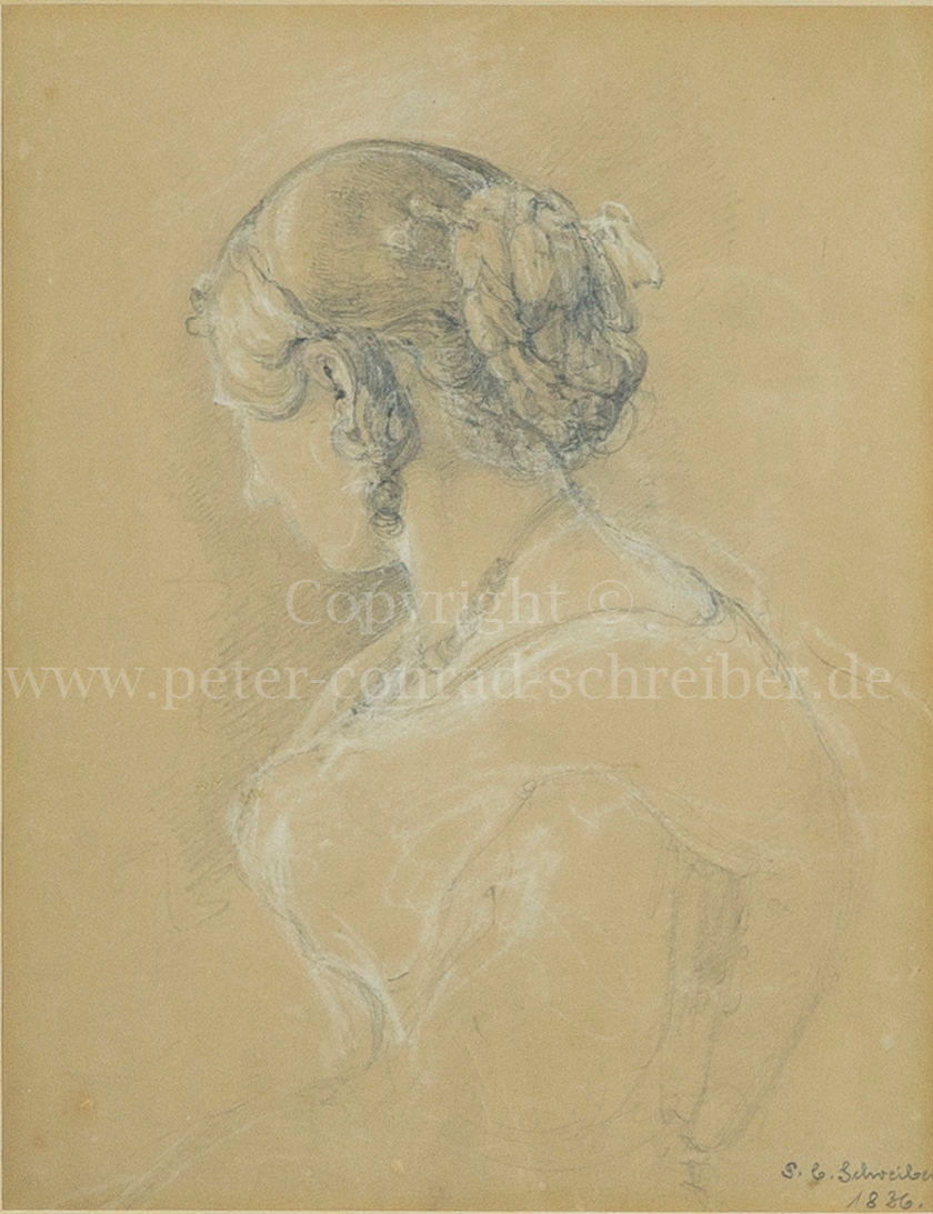 Eine weitere Zeichnung aus der Berliner Zeit (1836) dürfte aufgrund der Privatheit - Schreiber zeichnete seine Mutter - keine Arbeit sein, die in der Atelierklasse entstanden ist. Das Bildnis wird in Teil 2 nochmals Gegenstand einer kurzen Betrachtung sein.