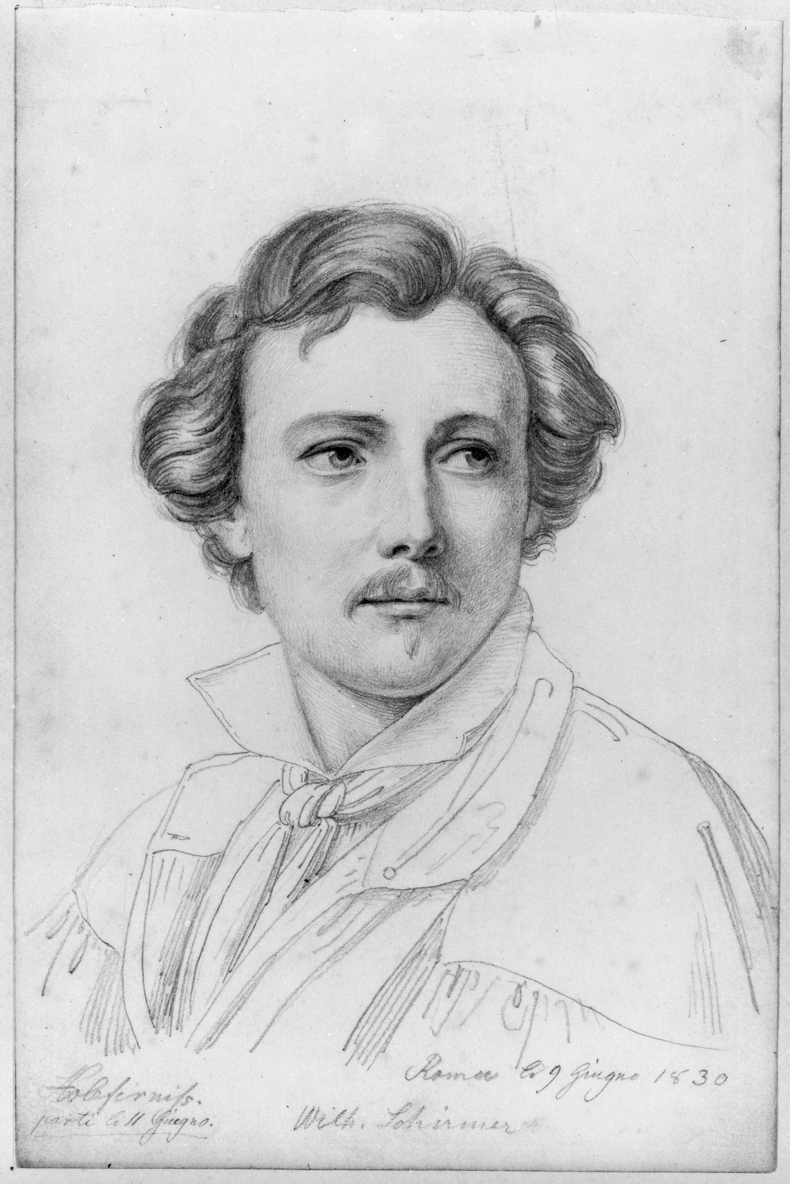 [4] August Wilhelm Schirmer war Schreibers Lehrer, Förderer und Mentor in den Berliner Jahren 1835-1837. In den Katalogen der Akademie der Künste war Schirmer bei den Ausstellungsstücken Schreibers von 1836 bis 1839 jeweils als Lehrer Schreibers angegeben. Bildnachweis: Kupferstichkabinett. Staatliche Museen zu Berlin. Fotograf ist Jörg P. Anders.