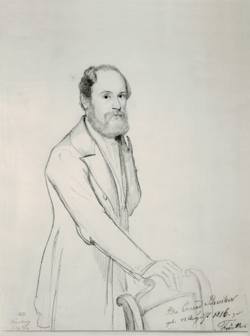[21] Die Zeichnung von Vogel von Vogelstein zeigt einen schlanken und elegant im Stil der Zeit gekleideten Schreiber im Juli 1851. Bildnachweis: Kupferstich-Kabinett, Staatliche Kunstsammlungen Dresden.