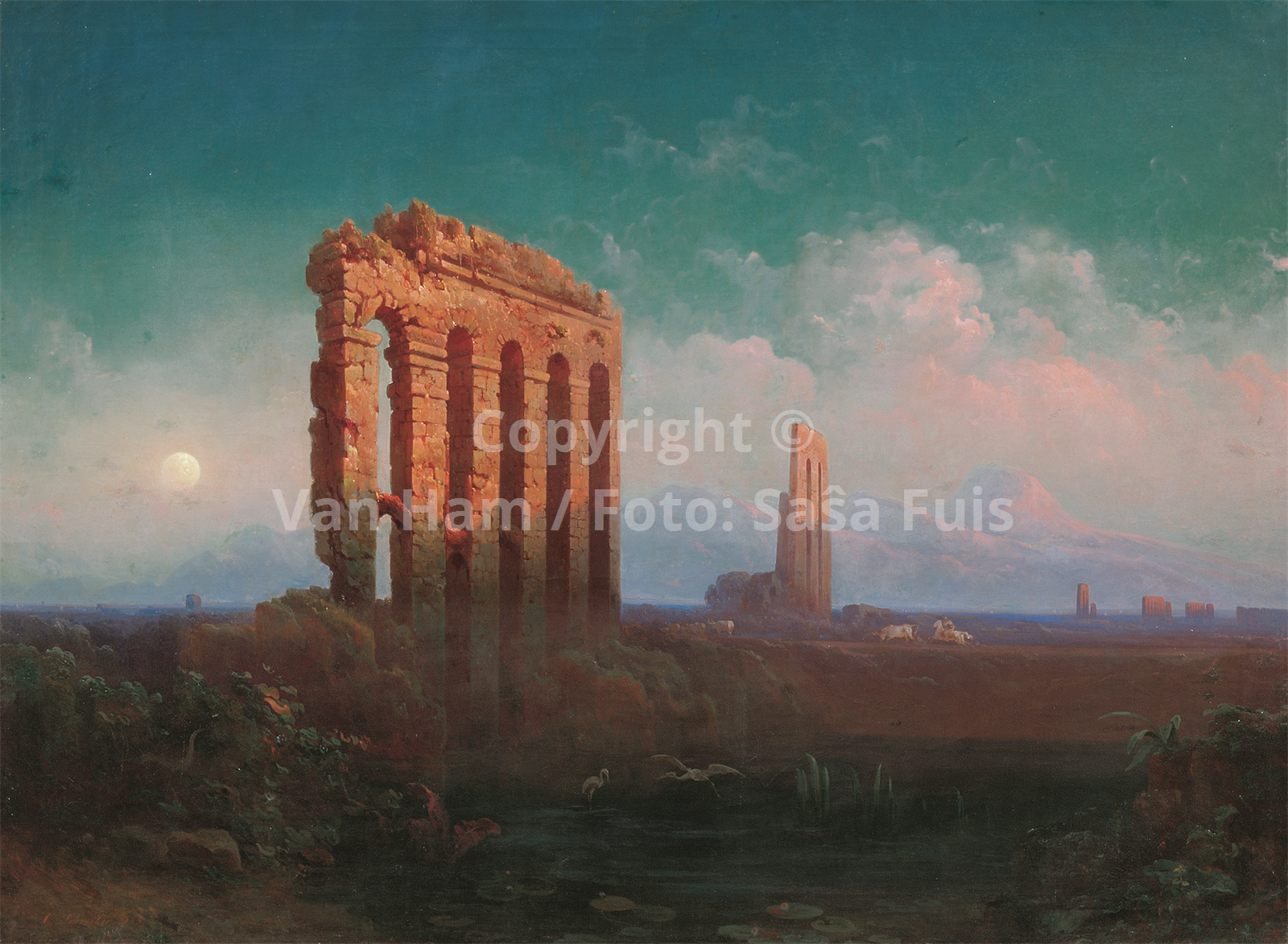 Motiv/Thema Italienische Landschaft mit Gewässern und Ruinen