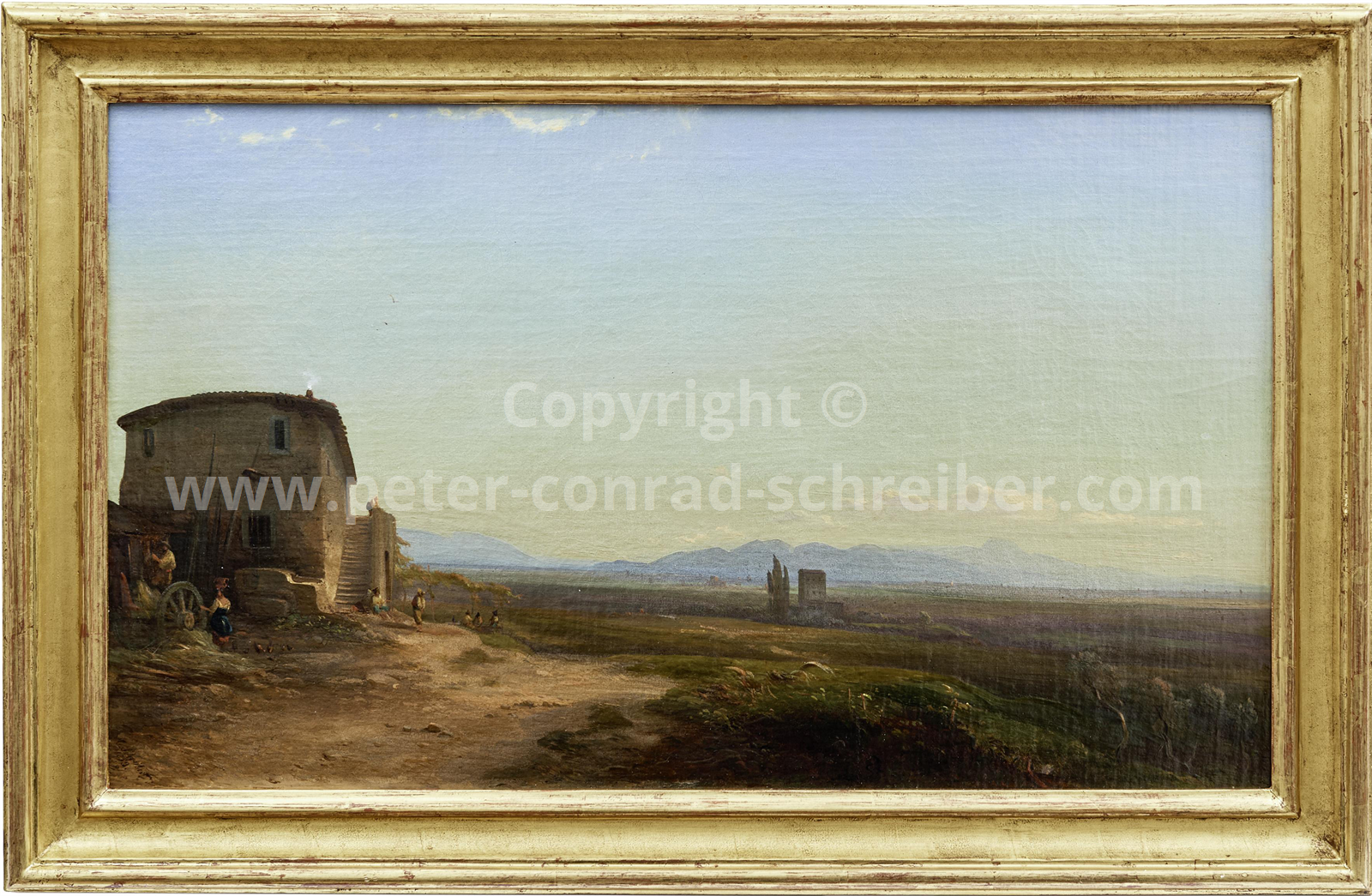 Motiv/Thema Landschaft in der Campagna Romana mit Bauernhaus