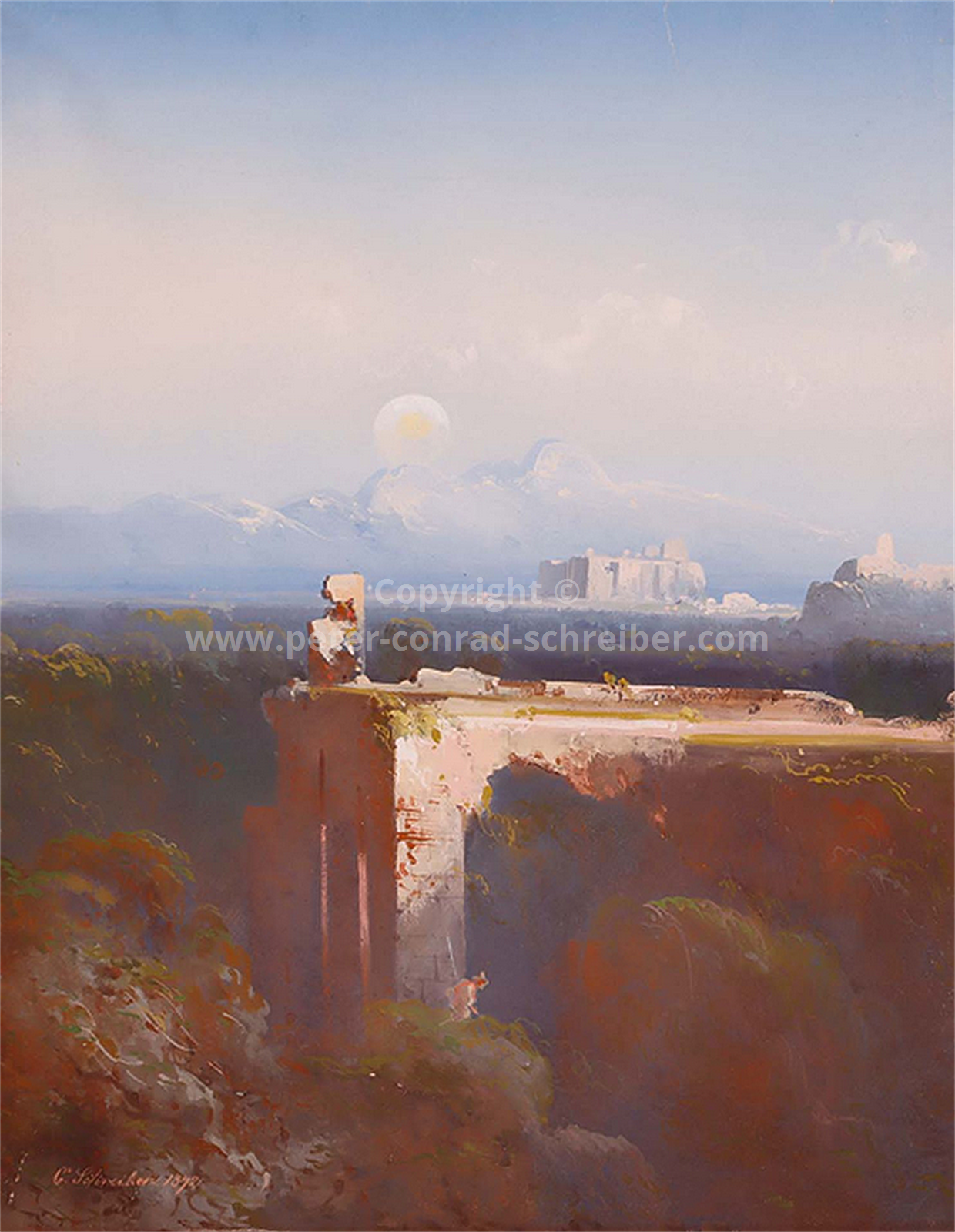 Literaturhinweise Abbildung auf Seite 241 des Online-Katalogs (Artprice-Images-Database: https://www.artprice.com/artist/69945/peter-conrad-schreiber). Ein ähnliches Bild „Süditalienische Landschaft mit Reiter“ von 1866 wurde in einer Auktion bei WOOLLEY & WALLIS in Salisbury am 10.12.2014 angeboten, Los-Nr. 175 (siehe ID 332)