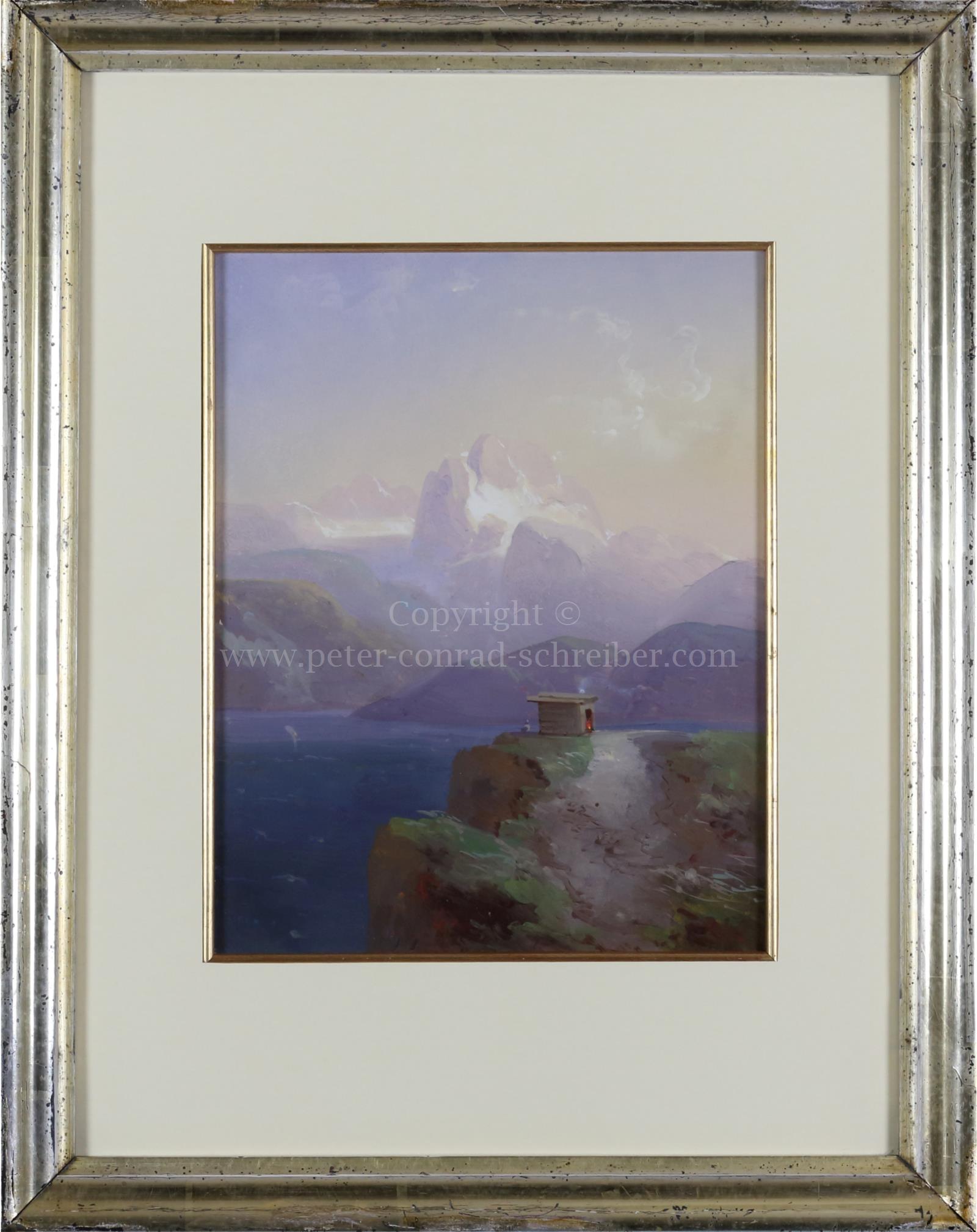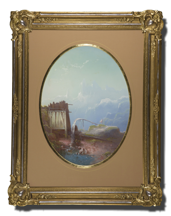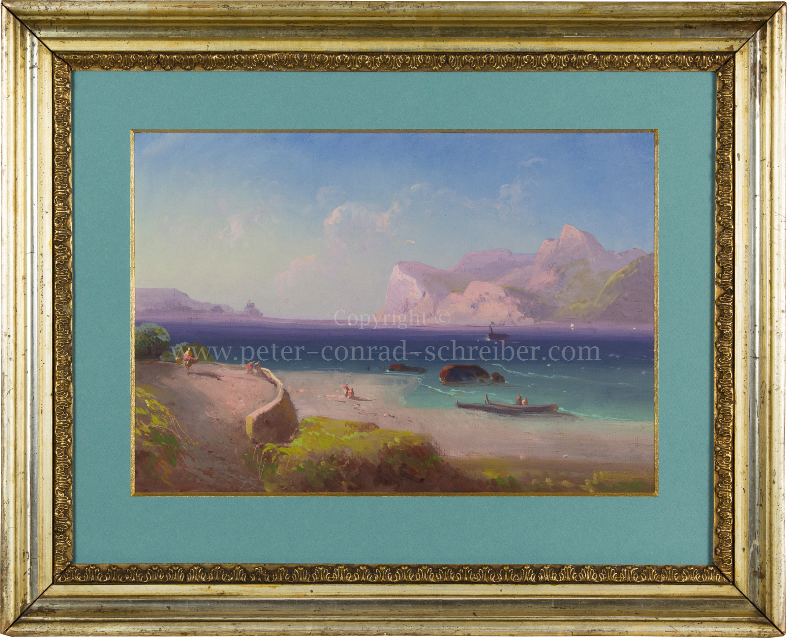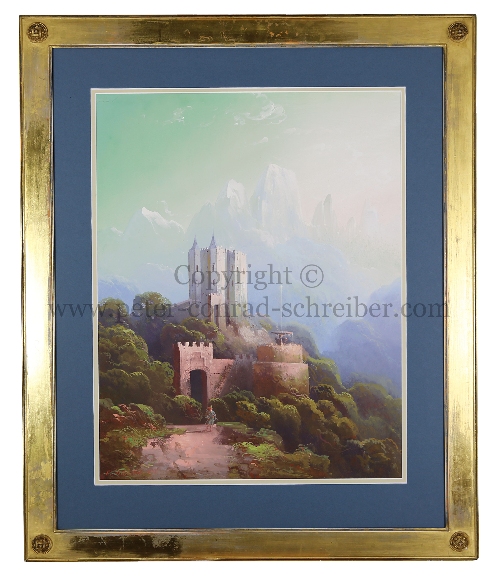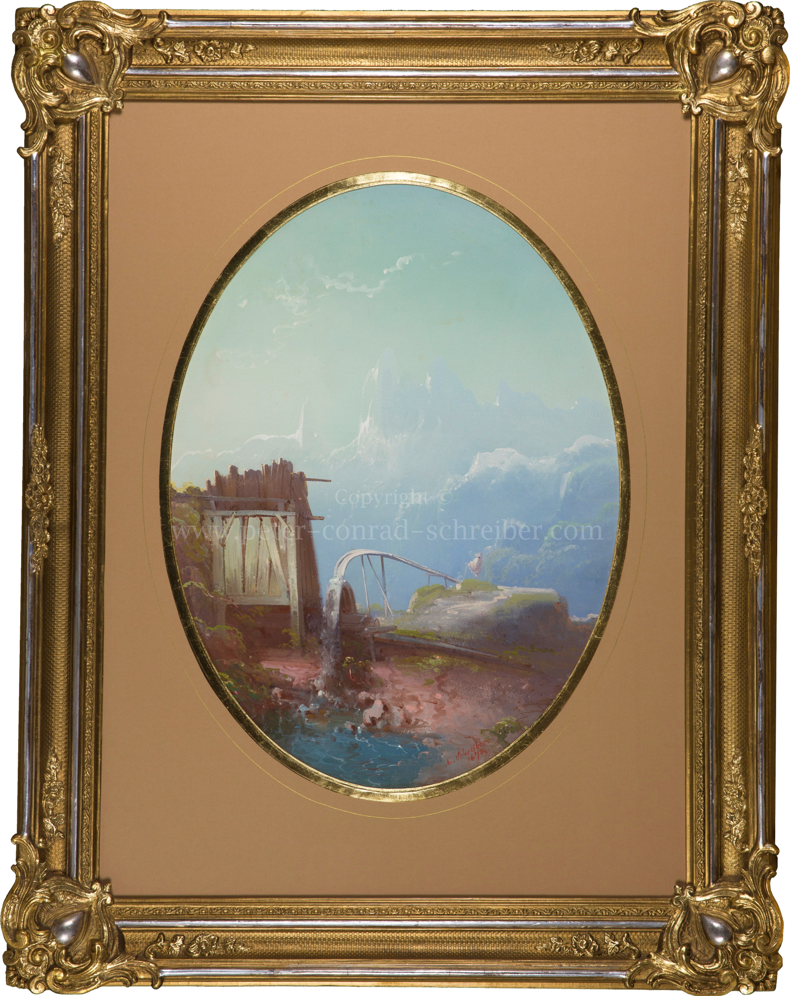 Gouache auf Papier, original blattvergoldeter Rahmen aus der Zeit