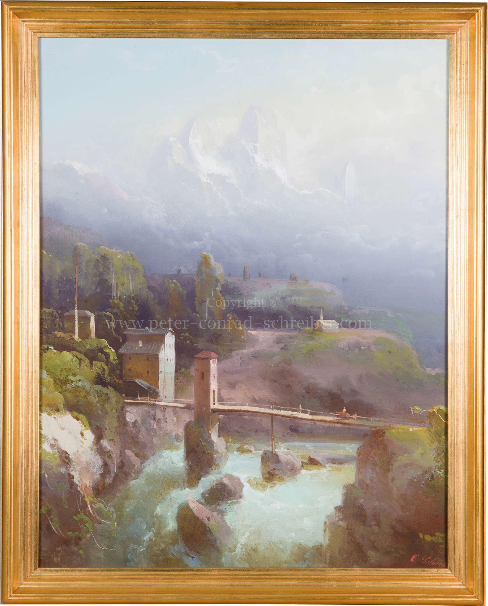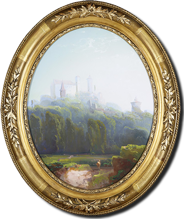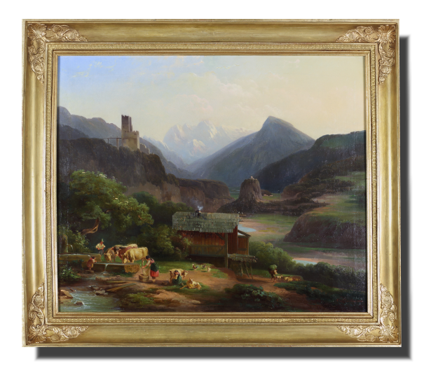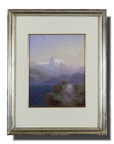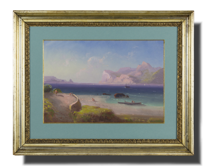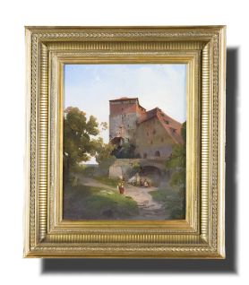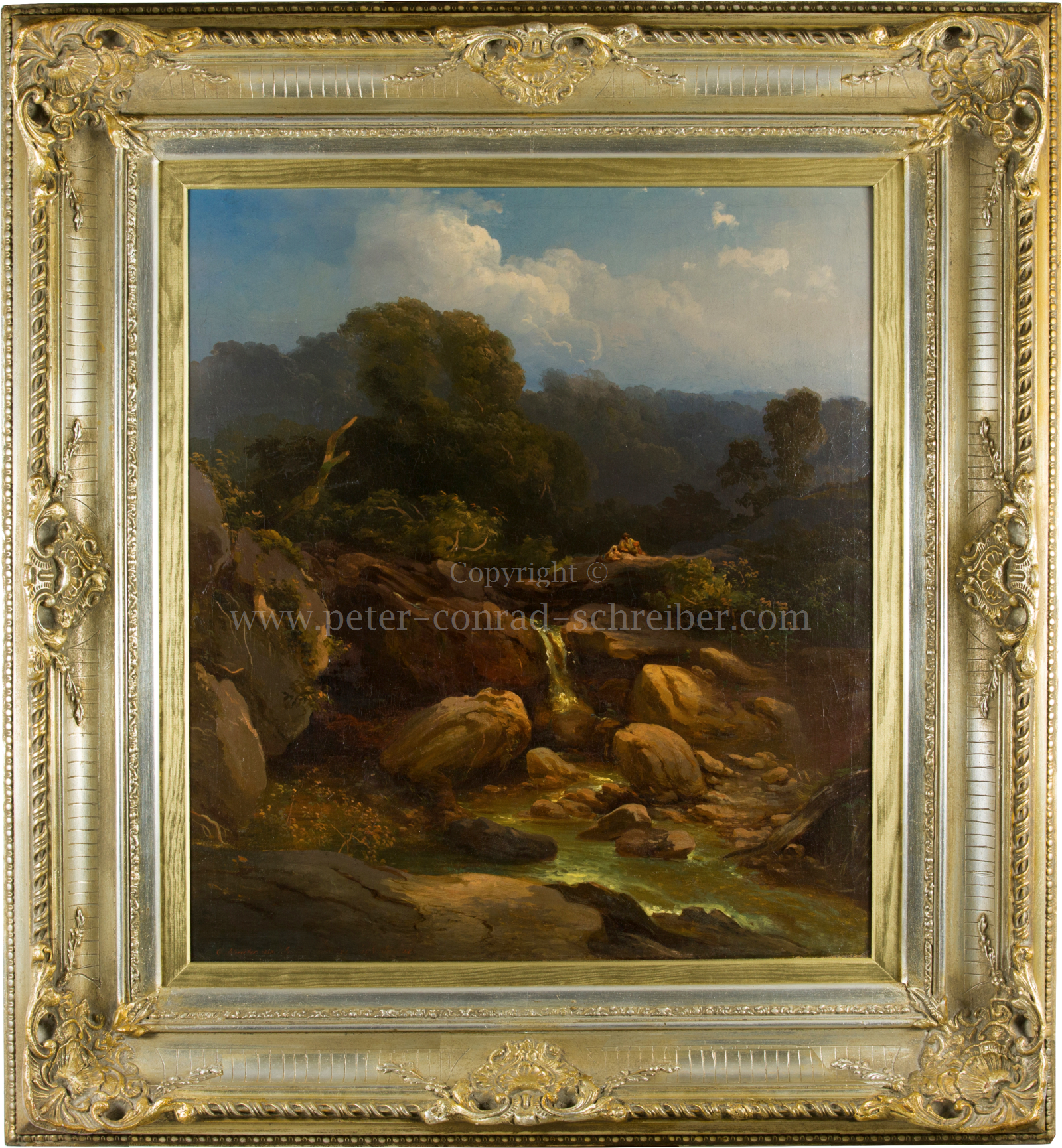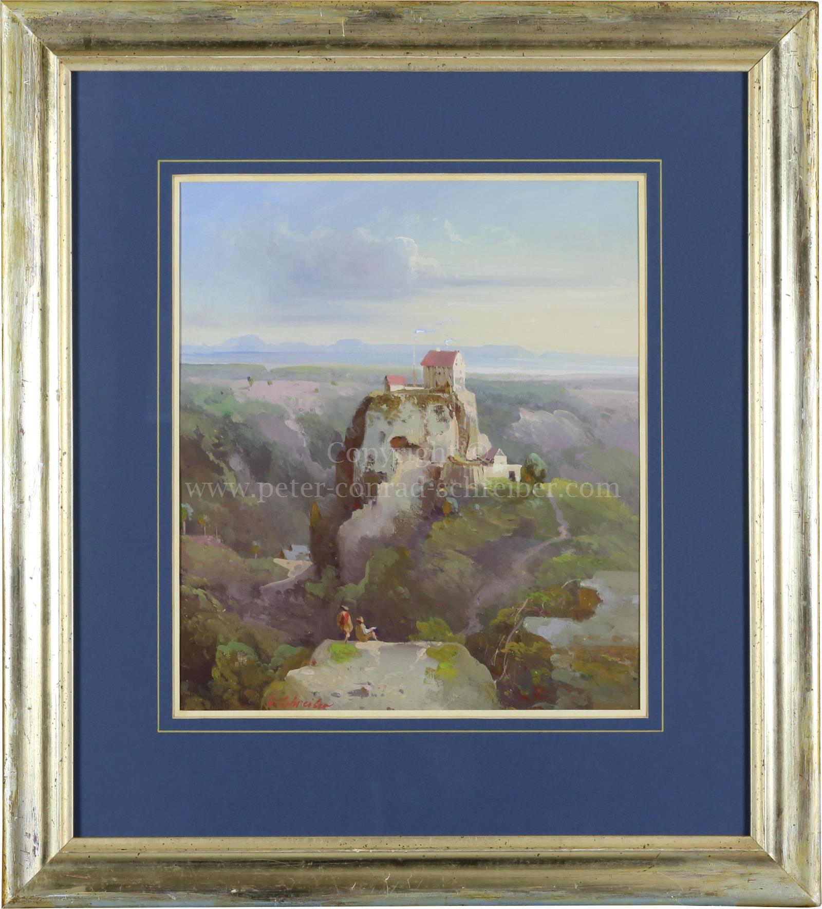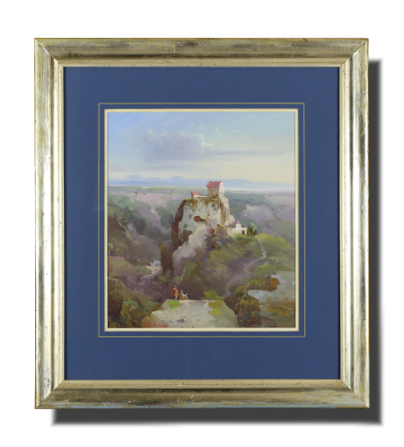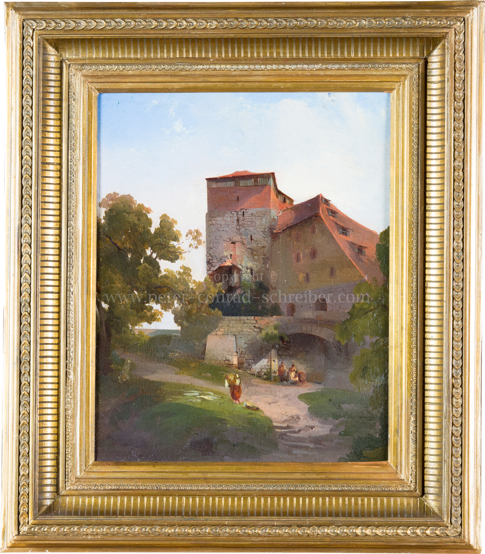 Gouache auf Papier, original blattvergoldeter Rahmen aus der Zeit